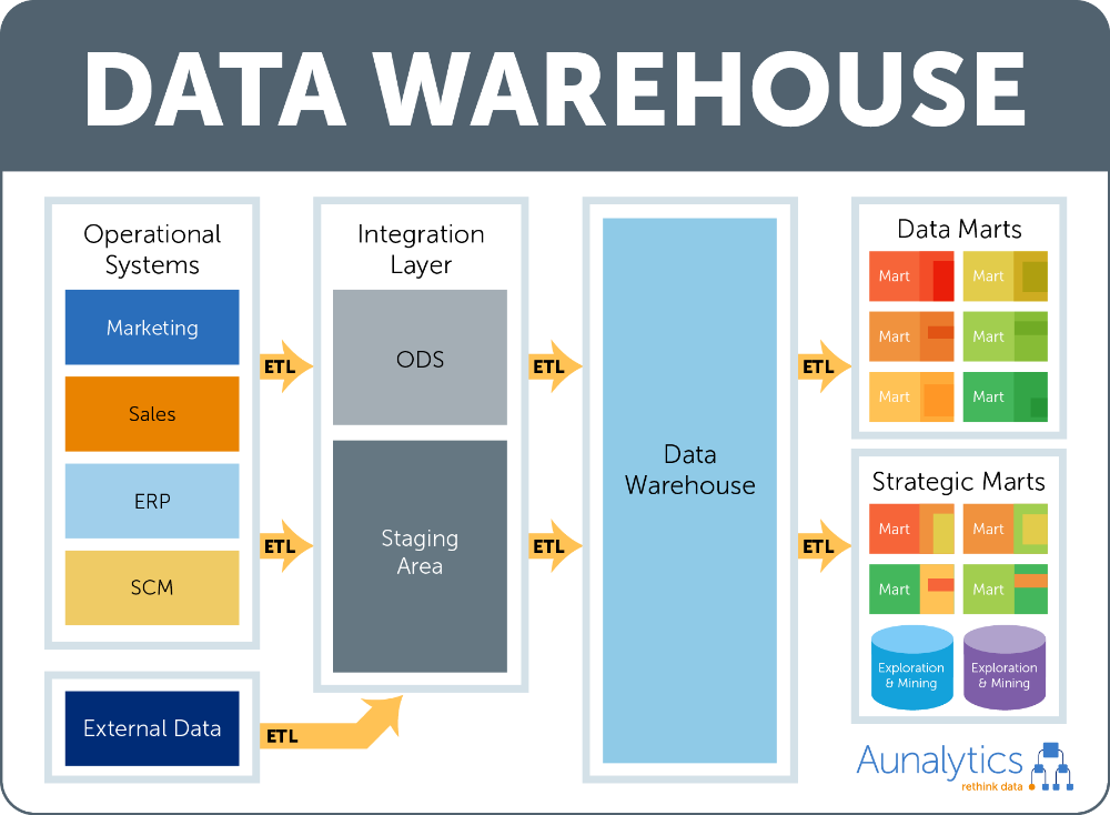 - 흔히 데이터 웨어하우스(DW), 데이터 마트(DM) 같은 저장소에 데이터를 쌓기 위한 전처리 과정으로 활용된다.
