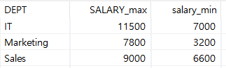 - 저는 DEPT(부서)를 GROUP BY 할 것이므로, 그룹 필드에 DEPT를 넣었고, 이름은 SALARY_MAX, salary_min으로 대상은 둘 다 모두 SALARY(연봉) 그리고 마지막으로 유형에 최댓값과 최솟값을 기입하였습니다.