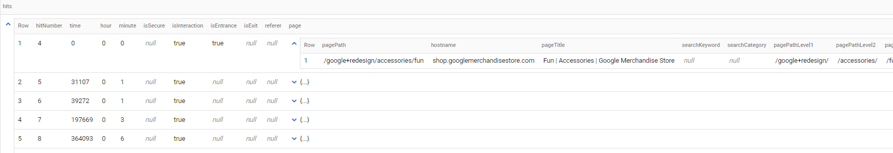 FROM 테이블명, UNNEST(hits) AS h쿼리 결과는 아래와 같이 잘 나오게 된다.