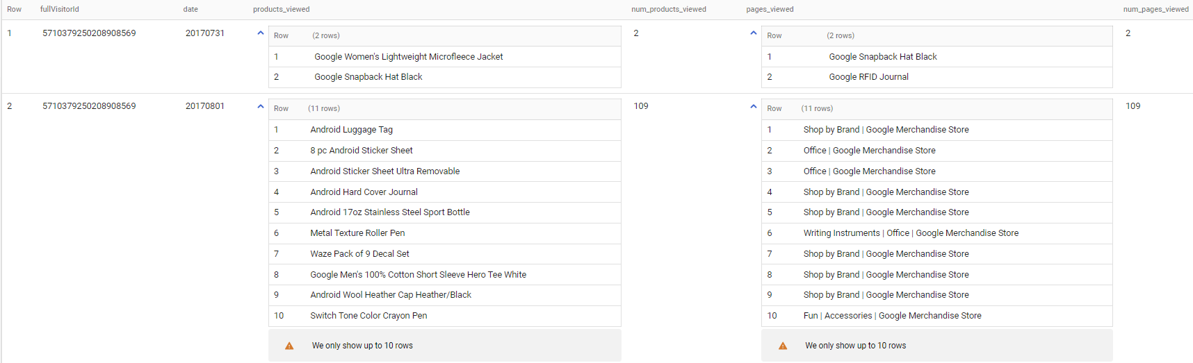ARRAY_AGG(DISTINCT pageTitle) AS pages_viewed,